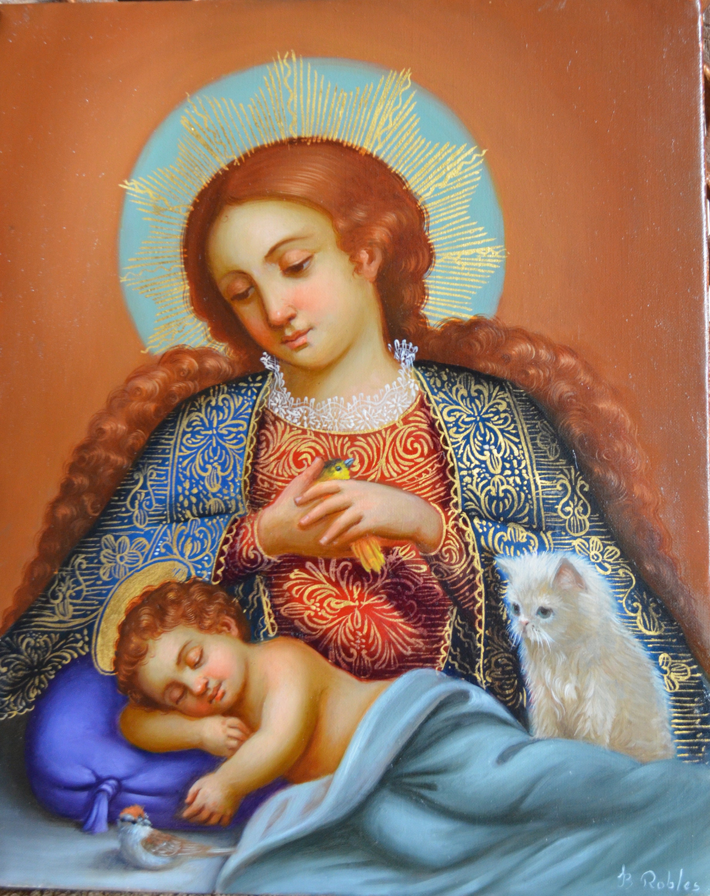 Spanish Colonial Painting Madonna With Crown Item 1366754